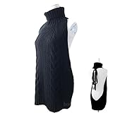 レディース ワンピース 肌見せセーター ルームウェア レディース バックレスニット 背中開き ブラック カーキ ブルー グレー (ブラック)
